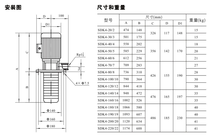 SDK4/SDKT4為配用標(biāo)準(zhǔn)電機(jī)的非自吸立式多級(jí)離心泵,電機(jī)軸和泵軸用聯(lián)軸器直接聯(lián)接的結(jié)構(gòu)。為滿足水槽或容器的安裝深度,可安裝空套的腔體來(lái)改變泵本身的侵入 深度。